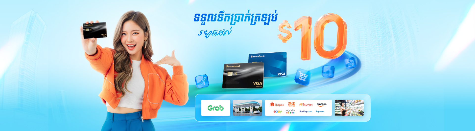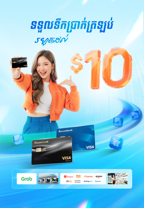 $10 Cash Back រៀងរាល់ថ្ងៃ! ចាយជាមួយ ប័ណ្ណឥណទានវីសា សាខមប៊ែង
